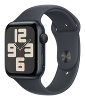 Apple Watch SE GPS 44mm Midnight Aluminium Case with Midnight Sport Band - M/L. Display technology: OLED, Display resolution: 368 x 448 pixels, Touchscreen. Flash memory: 32 GB. Wi-Fi. GPS (satellite). Weight: 32.9 g. Waterproof up to: 50 m, Band material: Rubber, Band colour: Black, Band size: M/L. Operating system installed: watchOS 11